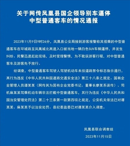 ·官方通報(bào)網(wǎng)傳國(guó)企領(lǐng)導(dǎo)別??蛙?chē):客車(chē)違規(guī)行駛,被國(guó)企員工非法攔截。