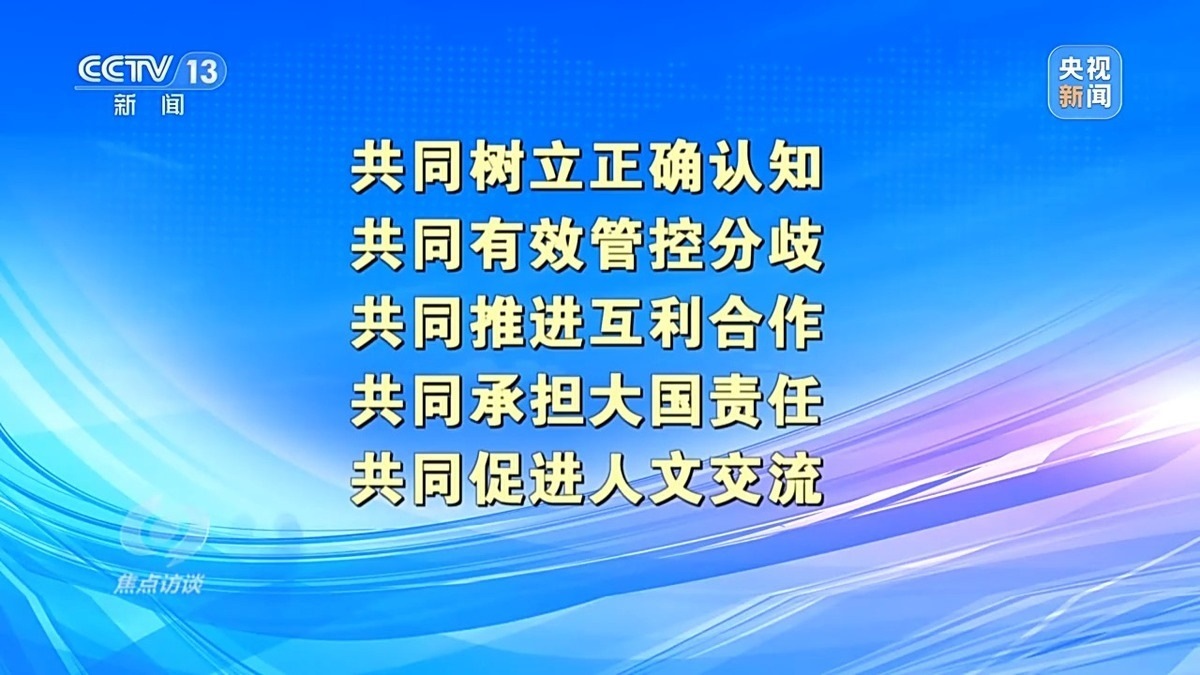 中國人民大學(xué)國際關(guān)系學(xué)院教授 刁大明:現(xiàn)在看舊金山這次會(huì)晤本身,中方非常清晰地從負(fù)責(zé)任大國角度出發(fā),從對(duì)歷史、對(duì)人民、對(duì)世界角度出發(fā),提出了一個(gè)中美兩國正確相處之道?!拔鍌€(gè)共同”是中國提出的一個(gè)正確相處之道,也是中國從負(fù)責(zé)任角度出發(fā),為穩(wěn)定中美關(guān)系,為更多增進(jìn)全球福祉提出中國方案。