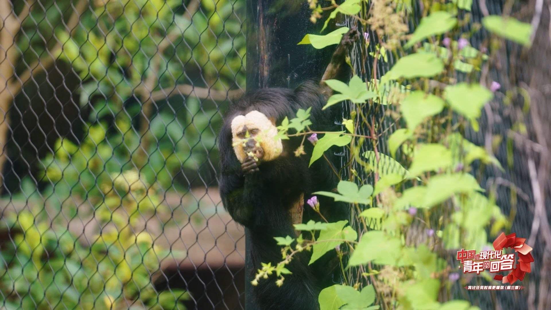 這個“小區(qū)”的“住戶”,很多已經(jīng)成了網(wǎng)紅。比如杜杜,一只白面僧猴,老家在南美洲的熱帶雨林中,長得很像動畫片中的無臉男,因為一抬頭把游客嚇了一跳,上過熱搜。它的鄰居是紅吼猴,擁有大嗓門,來自南美洲西北部;還有紅背須僧面猴,高顱頂王者,主要分布在南美北部。雖然是不同的猴兒,但三個大家庭在科學有序地飼養(yǎng)管理下,相處得很融洽。同一個“樓道”(外運動場)的鄰居還有黑鳳冠稚、犰狳、刺豚鼠,它們在這里處得關(guān)系還不錯。猴子們主要在樹冠層活動,吃東西時常常會掉下許多“漏網(wǎng)之魚”,就成了地面上活動的黑鳳冠雉、刺豚鼠們的加餐。