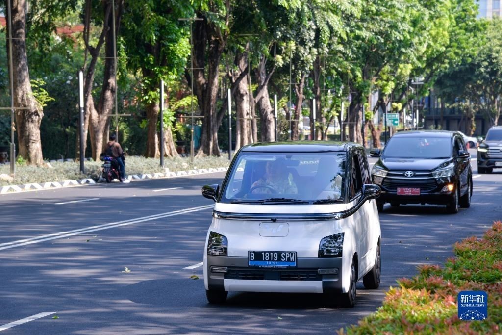 9月29日,在印度尼西亞雅加達(dá)街頭,一位車主駕駛著自己的五菱新能源車Air ev。新華社記者 徐欽 攝