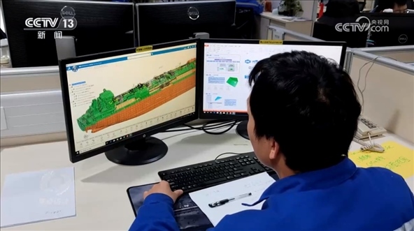 精益求精是確保產(chǎn)品質(zhì)量的生命線(xiàn),科技創(chuàng)新則是推動(dòng)產(chǎn)業(yè)進(jìn)步的動(dòng)力源。2016年,江南造船成立了江南研究院,利用數(shù)字技術(shù)來(lái)提高設(shè)計(jì)和生產(chǎn)中的效率。比如這套VR系統(tǒng)就可以模擬船艙內(nèi)的真實(shí)情況,讓設(shè)計(jì)師、建造團(tuán)隊(duì)和船東公司可以據(jù)此共同討論設(shè)計(jì)是否合理,這極大地降低了成本、提高了效率。
