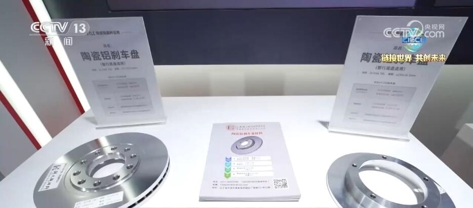 首先,我們來到了這樣一家生產(chǎn)汽車新材料的企業(yè)的展臺。我手上拿的銀色物質(zhì)叫陶瓷鋁晶種,大家肯定要問,它和智能汽車制造有什么關(guān)系呢?答案就在這一側(cè)。這款就是添加了陶瓷鋁晶種制造而成的剎車盤,這款剎車盤在強(qiáng)度和韌性上有所提升,同時它的自重也減輕60%。隨著智能化汽車對輕量化的要求越來越高,關(guān)鍵原材料也在不斷創(chuàng)新??梢哉f陶瓷鋁晶種已經(jīng)成為了汽車輕量化的關(guān)鍵原材料。