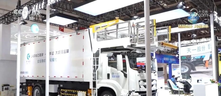總臺央視記者 張歆:在本屆鏈博會上,我們也看到了許多智能專用車。大家可以看到在我身旁就是一臺智能航空食品專用車,這臺重量達(dá)到21噸左右的“大塊頭”裝了許多個雷達(dá),通過5G的算法就能夠?qū)崿F(xiàn)無人駕駛和無人作業(yè)。