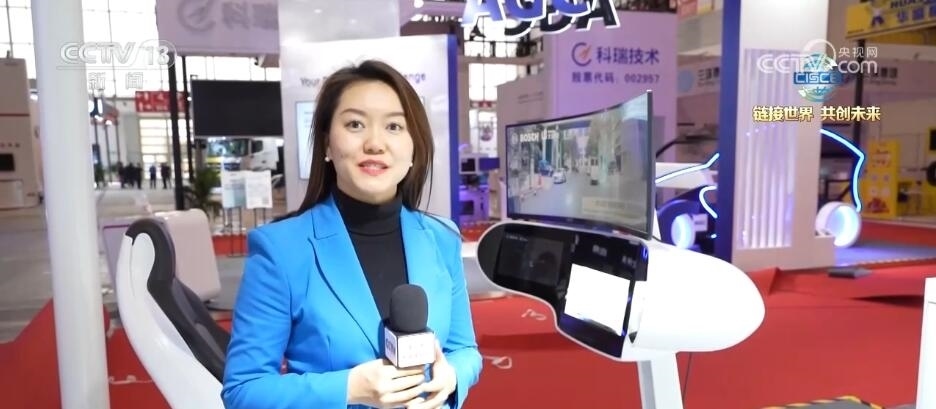 在本屆鏈博會上,智能汽車鏈的中游包括智能駕駛解決方案和動力電池解決方案等也得到展示。在我身旁的是這家展商帶來的高階智能駕駛解決方案,我們一起去體驗(yàn)一下。大家可以看到,上面這塊大屏幕是實(shí)時的路況,左側(cè)屏幕實(shí)際上是計算機(jī)算法看到的現(xiàn)在道路路況,右手邊是汽車和其他汽車交互的情況,主要用于規(guī)劃路線。這款高階智能駕駛解決方案將于今年四季度進(jìn)行量產(chǎn)。有了它的輔助,未來,出行將會更加安全和輕松。