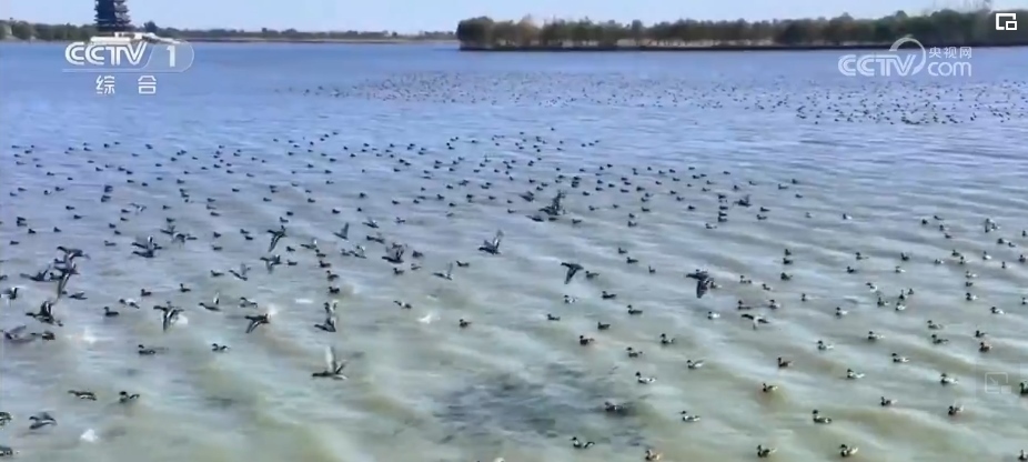 有著“鳥中大熊貓”之稱的東方白鸛瀕危鳥類2023年有500多只飛到了這里。近年,當?shù)赝ㄟ^退漁還湖、電力設施入地等環(huán)境修復美化工程,生態(tài)質量大幅提升。