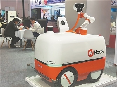 圖② 首屆鏈博會上展示的智電充電機器人。本報記者 洪星攝
