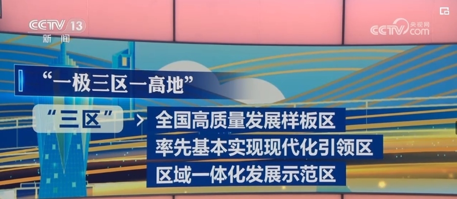 其中,“一極”就是全國發(fā)展強(qiáng)勁活躍增長極,“三區(qū)”指的是全國高質(zhì)量發(fā)展樣板區(qū)、率先基本實(shí)現(xiàn)現(xiàn)代化引領(lǐng)區(qū)、區(qū)域一體化發(fā)展示范區(qū),而“一高地”則是指新時(shí)代改革開放新高地。