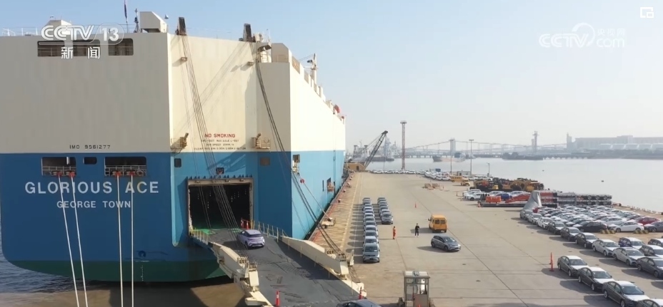 12月4日,在全國最大的汽車出口碼頭——上海外高橋港區(qū)海通國際汽車碼頭,3424輛國產(chǎn)汽車準(zhǔn)備發(fā)往沙特、阿聯(lián)酋、卡塔爾等共建“一帶一路”國家。