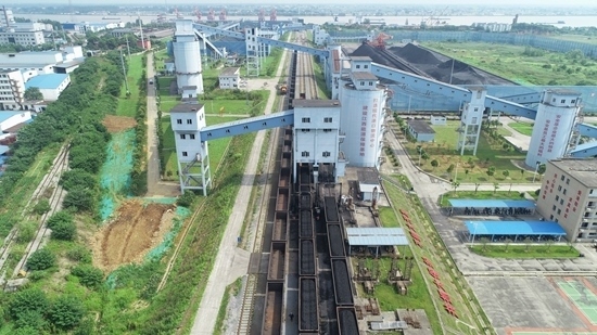 位于江西省煤炭?jī)?chǔ)備中心的鐵路專用線正在進(jìn)行電煤裝車作業(yè)。代建力/攝