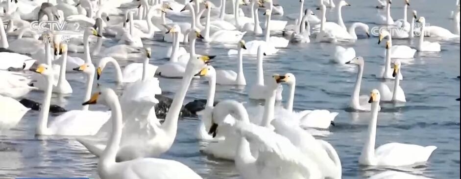 總臺記者 柳棟:我所在的位置是山東榮成大天鵝國家級自然保護(hù)區(qū),多年來這里形成了煙墩角、天鵝湖和櫻花湖三處大天鵝的集中區(qū)。今年遷徙的1萬多只大天鵝,目前九成以上已經(jīng)抵達(dá)這里,僅我所在的保護(hù)區(qū)范圍里就有超過6000多只。這里的工作人員告訴我,這些大天鵝是從3000多公里外的西伯利亞等地區(qū)長途飛行45天左右才能抵達(dá)的。飛抵后,大天鵝會(huì)在這里越冬,直到來年三四月份才會(huì)離開。因此,這里的大天鵝不再忙于練習(xí)飛翔和補(bǔ)充體力,而是從容不迫地開啟了度假模式,游客們也可以近距離與它們進(jìn)行互動(dòng)。