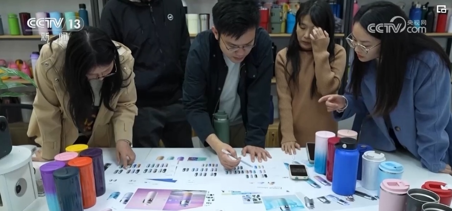 這兩天,王博文和設(shè)計(jì)團(tuán)隊(duì)正在為即將在海外上線的新款保溫杯挑選顏色,等顏色確定就可以開始大批量的生產(chǎn)。
