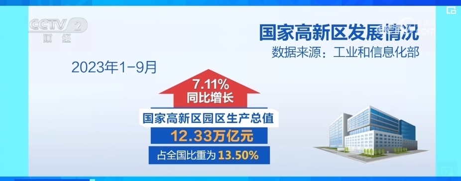 2023年前三季度,國(guó)家高新區(qū)園區(qū)生產(chǎn)總值為12.33萬(wàn)億元,同比增長(zhǎng)7.11%,占全國(guó)比重為13.50%,集聚了全國(guó)1/3的高新技術(shù)企業(yè)和2/3的科創(chuàng)板上市企業(yè)。