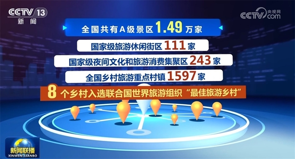 豐富優(yōu)質旅游產(chǎn)品供給。目前全國共有A級景區(qū)1.49萬家,國家級旅游休閑街區(qū)111家,國家級夜間文化和旅游消費集聚區(qū)243家,全國鄉(xiāng)村旅游重點村鎮(zhèn)1597家,8個鄉(xiāng)村入選聯(lián)合國世界旅游組織“最佳旅游鄉(xiāng)村”,成為文化和旅游賦能鄉(xiāng)村振興典型案例。