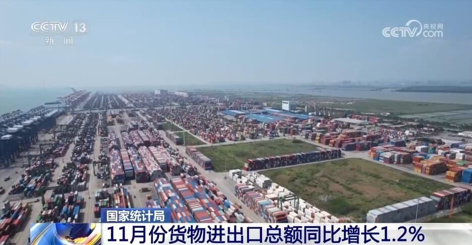 貨物進(jìn)出口同比增長,貿(mào)易結(jié)構(gòu)繼續(xù)優(yōu)化,11月份,貨物進(jìn)出口總額同比增長1.2%,比上月加快0.3個百分點(diǎn)。