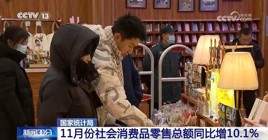 市場銷售增勢較好,服務(wù)消費(fèi)持續(xù)較快增長,11月份,社會消費(fèi)品零售總額同比增長10.1%,比上月加快2.5個百分點(diǎn)。