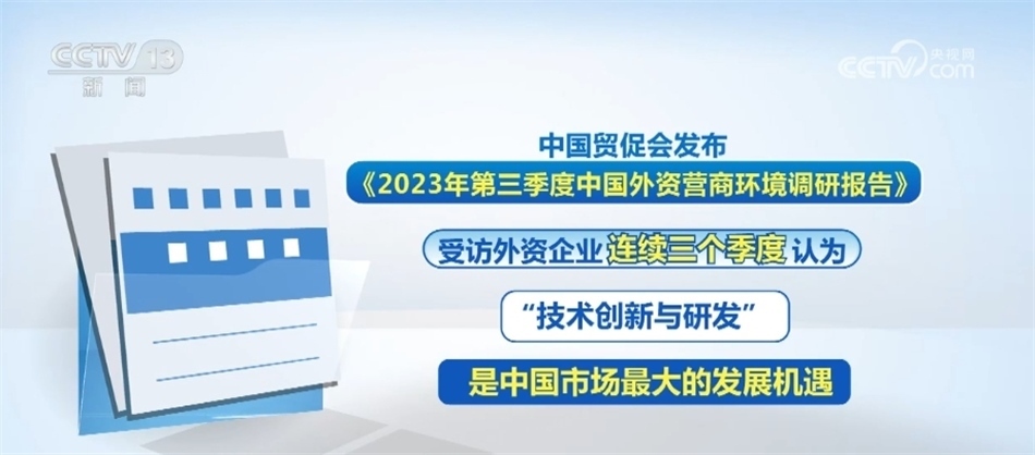 布局未來,如今,越來越多外資企業(yè)正在從“在中國制造”走向“在中國創(chuàng)造”。中國德國商會的調(diào)查報告就顯示,53%的德國企業(yè)計劃在未來兩年內(nèi)增加在中國本土化研發(fā)的職能;而中國貿(mào)促會發(fā)布的《2023年第三季度中國外資營商環(huán)境調(diào)研報告》則顯示,受訪外資企業(yè)連續(xù)三季度認為“技術(shù)創(chuàng)新與研發(fā)”是中國市場最大的發(fā)展機遇。