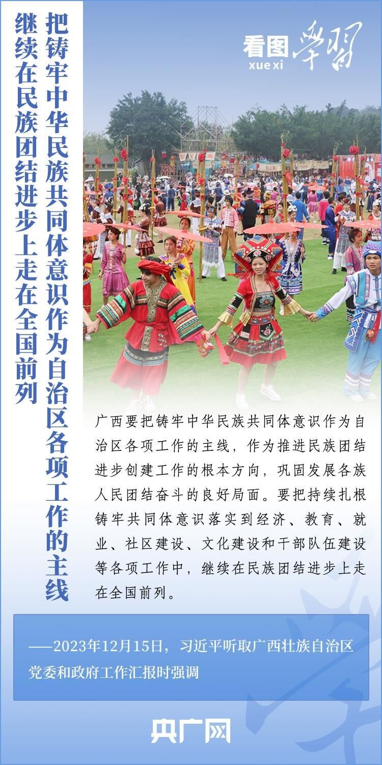 12月14日至15日,剛剛結(jié)束對越南進(jìn)行國事訪問的習(xí)近平總書記在廣西考察并聽取廣西壯族自治區(qū)黨委和政府工作匯報(bào)??倳泴V西發(fā)展提出殷切希望,強(qiáng)調(diào)廣西要發(fā)揮自身優(yōu)勢,以鑄牢中華民族共同體意識為主線,解放思想、創(chuàng)新求變,向海圖強(qiáng)、開放發(fā)展,努力在推動邊疆民族地區(qū)高質(zhì)量發(fā)展上展現(xiàn)更大作為,奮力譜寫中國式現(xiàn)代化廣西篇章。一起來學(xué)習(xí)!