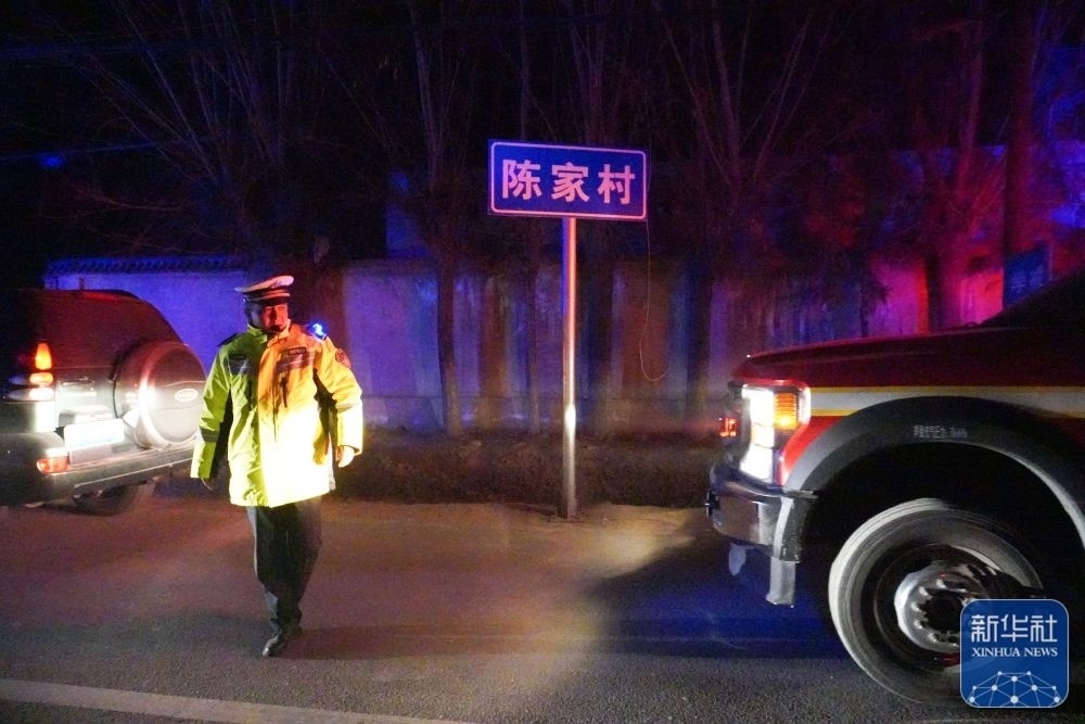 12月19日,在甘肅省臨夏回族自治州積石山保安族東鄉(xiāng)族撒拉族自治縣大河家鎮(zhèn)陳家村,一名交警指揮救援車輛進(jìn)入救援現(xiàn)場(chǎng)。新華社記者 馬希平 攝