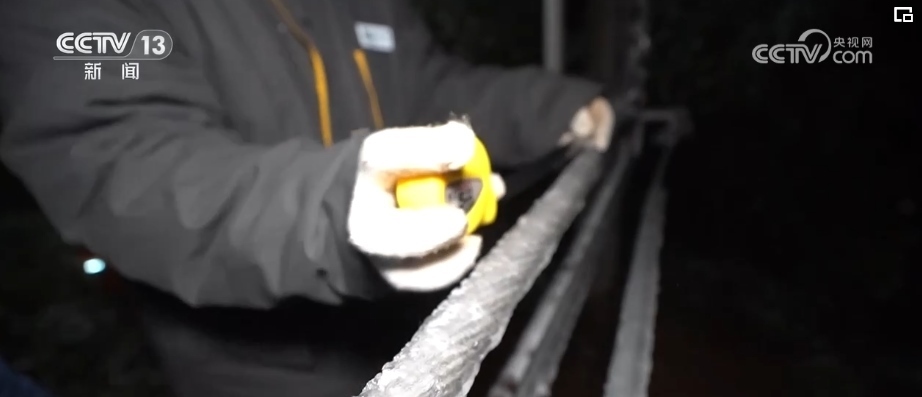 根據(jù)現(xiàn)場檢測,現(xiàn)在導(dǎo)線上的覆冰已經(jīng)超過了18毫米,融冰工作也正式開始。老廖告訴記者,他們采用的是導(dǎo)電加熱融冰的手段,通過對導(dǎo)線進行增加大電流,自動加熱,從而讓冰融化,但這一過程有時候要等很久。