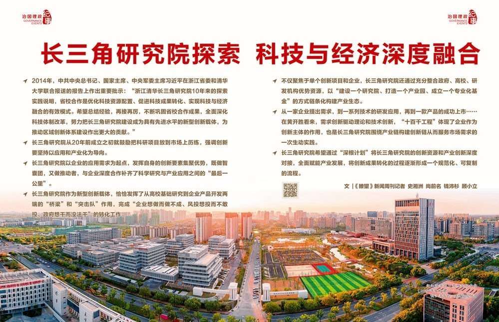 ◇2014年,中共中央總書記、國家主席、中央軍委主席習(xí)近平在浙江省委和清華大學(xué)聯(lián)合報(bào)送的報(bào)告上作出重要批示:“浙江清華長三角研究院10年來的探索實(shí)踐說明,省校合作是優(yōu)化科技資源配置、促進(jìn)科技成果轉(zhuǎn)化、實(shí)現(xiàn)科技與經(jīng)濟(jì)融合的有效模式。希望總結(jié)經(jīng)驗(yàn),再接再厲,不斷鞏固省校合作成果,全面深化科技體制改革,努力把長三角研究院建設(shè)成為具有先進(jìn)水平的新型創(chuàng)新載體,為推動區(qū)域創(chuàng)新體系建設(shè)作出更大的貢獻(xiàn)。”