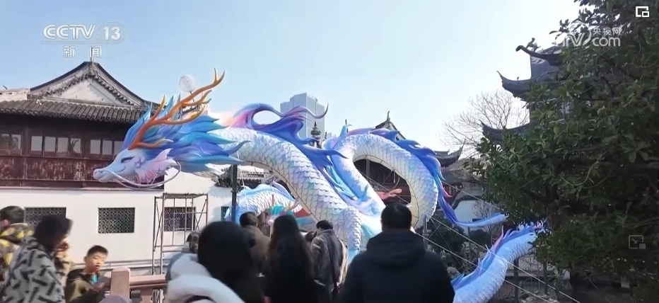 在上海,迎新春的傳統(tǒng)活動(dòng)豫園燈會正在緊鑼密鼓籌備中。在豫園商城的凝暉路上,名為“一夜魚龍舞”的主題燈組已經(jīng)亮燈。抬眼望去,多彩的魚群匯成游龍回旋的姿態(tài),游走在飛檐斗拱之間,呈現(xiàn)出一片繁華景象。