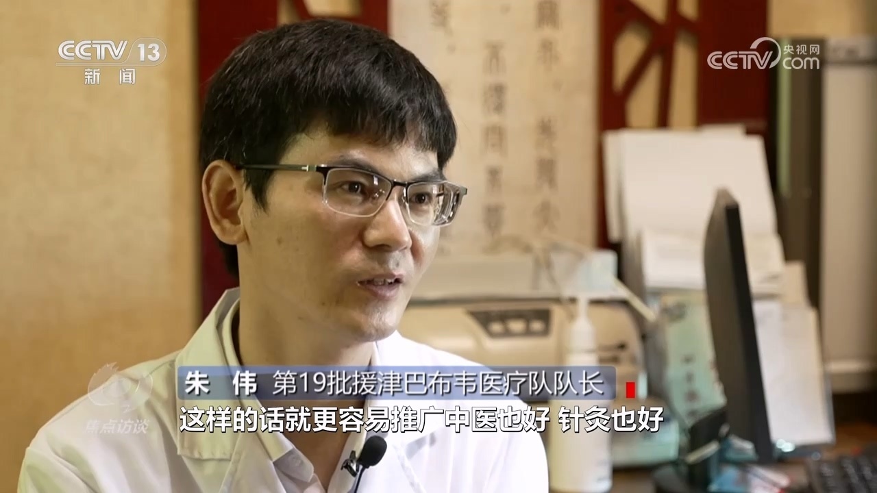 第19批援津巴布韋醫(yī)療隊隊長朱偉:“病人到60個的時候,工作強度太大了。后來我就慢慢給他們預(yù)約,培養(yǎng)當(dāng)?shù)氐尼樉娜瞬?,這樣就更容易推廣中醫(yī)也好,針灸也好。去年,我在那里就培養(yǎng)了十個學(xué)員,他們自己能做。當(dāng)?shù)匾彩强吹街嗅t(yī)針灸的效果,所以他們很多人想學(xué)?!?/p>
