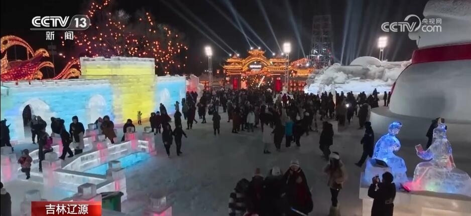 在吉林遼源,夜幕剛剛降臨,城市就被璀璨的燈火點(diǎn)亮。當(dāng)?shù)匕阎袊鴤鹘y(tǒng)元素和冰雪相融合,推出大型夜游冰雪主題樂園,吸引很多游客沉浸式體驗冰雪魅力。置身3萬平方米的冰雪主題樂園里,既有年年有余、萬馬奔騰等中國節(jié)慶元素的雪雕,也有晶瑩剔透、絢麗多彩的各類大型冰雕。園區(qū)里還專門在雪地上搭起動感、炫彩的舞臺,引領(lǐng)游客們一起互動。