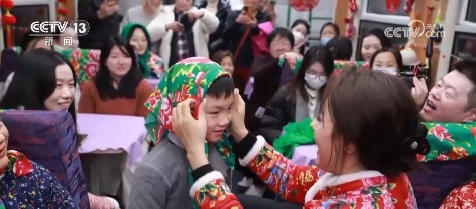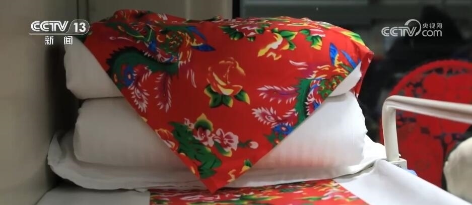 總臺(tái)央視記者 楊曜語:一上車,我就被濃濃的東北文化所感染到了,整個(gè)車廂都被東北大花的經(jīng)典配色裝飾著,再加上隨手就能品嘗到的特色美食,坐在床鋪上就感覺一秒鐘“穿越”到農(nóng)家炕頭。跟著游客,我現(xiàn)在到了一節(jié)互動(dòng)車廂,這里被布置成“跨年狂歡”的主題場(chǎng)景,在這里游客可以參與剪窗花、包餃子、穿東北大花襖一系列特色活動(dòng),現(xiàn)在就有很多游客在這里打卡拍照。