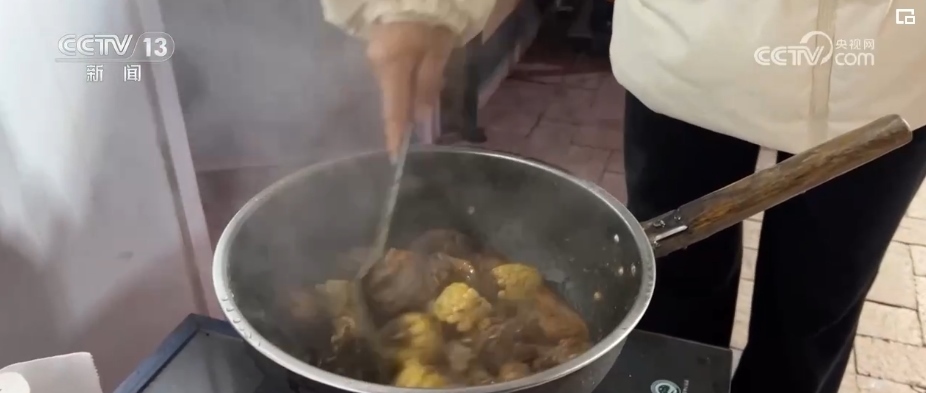 2023年12月31日晚上,孩子們的笑聲、小呲花的噼啪聲點燃了積石山縣劉集鄉(xiāng)團結(jié)村安置點過節(jié)的氛圍。電視打開了,安置點的群眾圍著篝火一起看跨年晚會。而此時,婦女們也在忙著,燉牛肉、包餃子、炸果子,香氣在安置點彌漫開來。