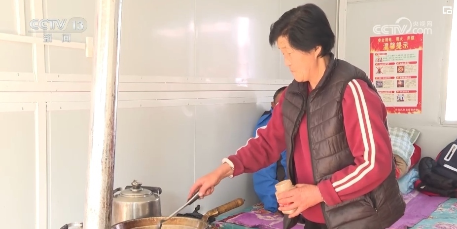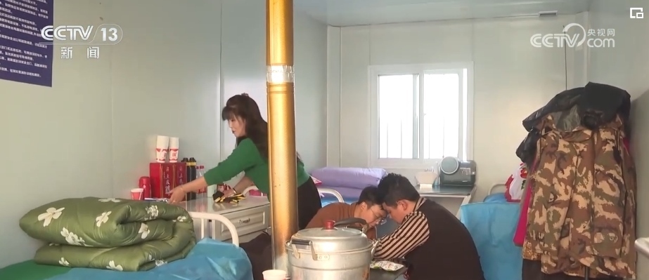 目前,安置點的水、電、通訊已經(jīng)全部覆蓋,房間內(nèi)床褥、火爐、電暖器等生活用品也都已備齊。中午,安置點的活動板房里飄出了陣陣飯菜香氣,親朋好友聚在一起迎接新一年的到來。