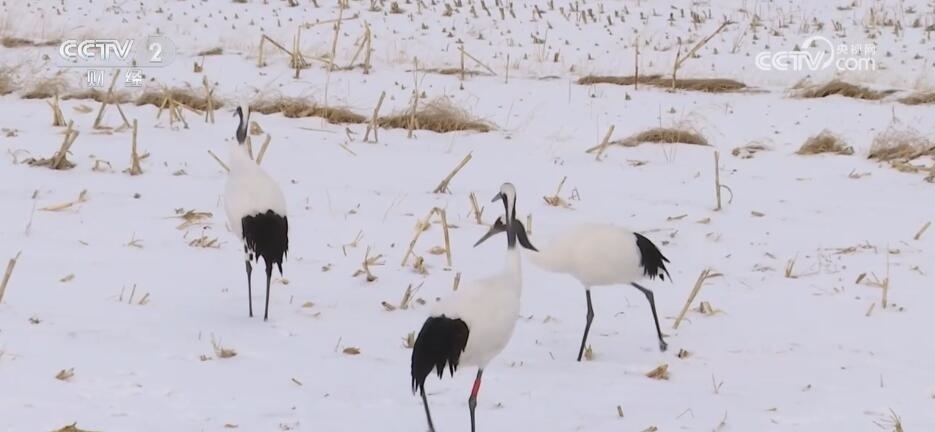 在內(nèi)蒙古烏蘭察布市涼城縣的一處開闊地,三只丹頂鶴時而遠眺觀望、時而低頭覓食。丹頂鶴是國家一級重點保護野生動物,全球數(shù)量僅2000余只。丹頂鶴每年春季2月末3月初會前往內(nèi)蒙古以及東北三省的繁殖地,而后又會在每年秋季9月末到10月初開始離開繁殖地往南遷徙,11月初開始分批到達江蘇鹽城等地。本次發(fā)現(xiàn)丹頂鶴在內(nèi)蒙古地區(qū)越冬,初步猜測是由于食物來源比較充足。此外,為了保護好這些越冬的丹頂鶴,當?shù)馗鞑块T也都做好了準備,隨時跟蹤監(jiān)測,保障丹頂鶴的安全。