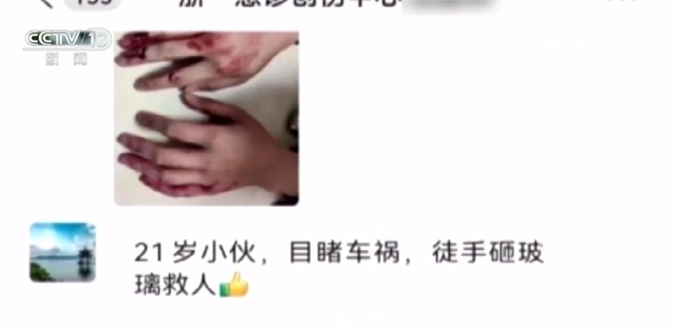 路遇事故車冒濃煙 “00后”小伙砸窗救人