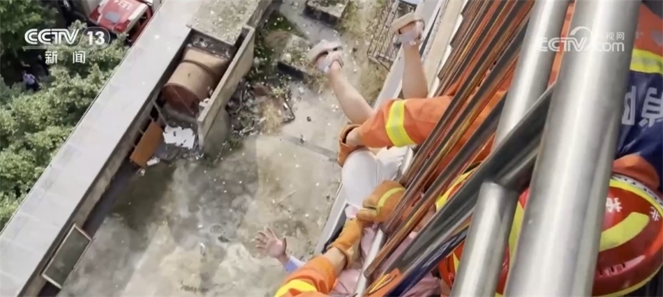七層樓外,沒有任何防護措施,僅靠雙手雙腳,費關(guān)雙終于爬到了小女孩兒腳下的陽臺,他先嘗試將小女孩兒救下,但是孩子的頭被欄桿卡住,沒有辦法救出,他只好用力托舉著孩子的雙腿,避免孩子因頭部被卡而窒息。此時,樓下聚集的人越來越多,大家紛紛伸出援手。