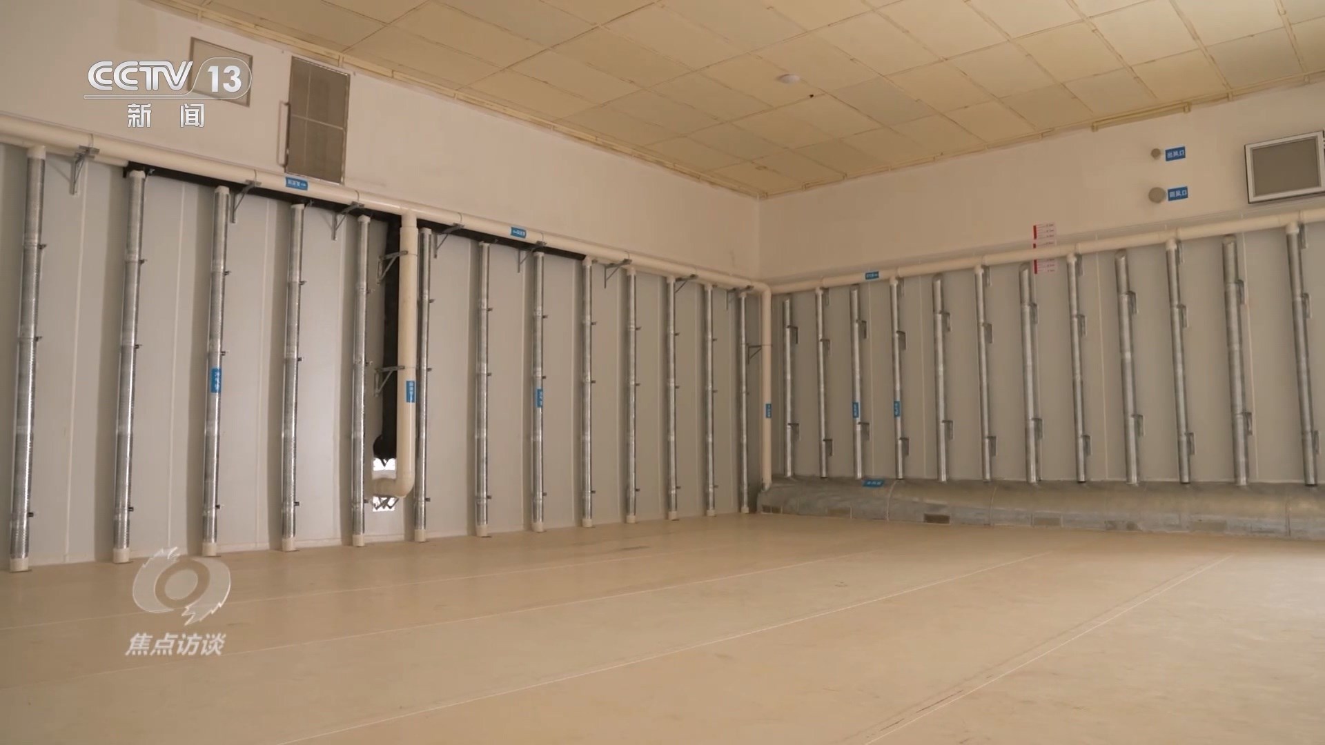 當工作人員打開這座暫時空著的倉庫時,墻壁上的一排排管道十分搶眼,天氣熱的時候,這四面墻的氣道里都會充入冷空氣,再加上頂部的風道,這“五面立體動態(tài)控溫技術”就相當于給糧倉內(nèi)外加了一道隔離帶,低溫保鮮。