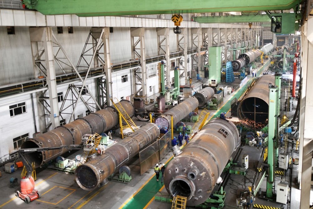 工人在哈電集團(tuán)哈爾濱鍋爐廠有限責(zé)任公司生產(chǎn)車間作業(yè)(2023年4月12日攝)。新華社記者 王建威 攝