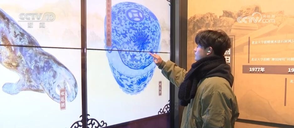在圓明園博物館的互動區(qū),不少游客正點擊著自己感興趣的展品。