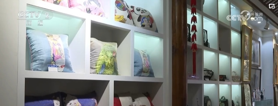 記者在年畫村的一家畫坊看到,各式各樣的年畫繡品、展品、飾品擺滿了柜臺。除了傳統題材的綿竹年畫外,創(chuàng)新類的綿竹年畫也占據了一席之地。為滿足市場需求,畫坊正加班加點趕制備貨。目前,店內準備了充足的年畫商品,來滿足顧客不同程度上的需求。