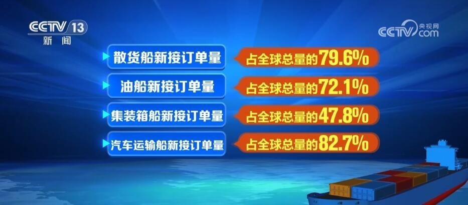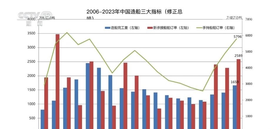 總臺央視記者 吳天白:在2023年中國造船業(yè)統(tǒng)計(jì)數(shù)據(jù)中,我們還可以看到三大指標(biāo)占國際市場份額分別是50.2%、66.6%和55.0%,首次全部超過50%。