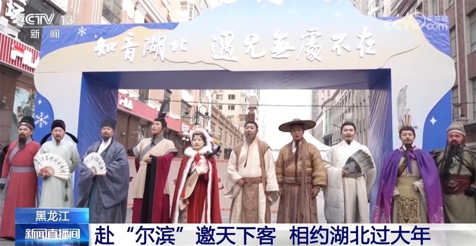 這些天,一群來自湖北的特殊游客抵達(dá)黑龍江哈爾濱,開啟他們的冰雪之旅。他們是湖北省文化和旅游廳組織扮演的“歷史名人天團(tuán)”,既有屈原、伯牙子期等,也有李白、蘇東坡等曾在湖北留下著名詩篇的文人。他們在中央大街聚首,“拼”詩詞展音律,傳遞傳統(tǒng)文化之美。在暢享北國風(fēng)光的同時(shí),也為游客們送上一場超級文旅秀和文旅大禮包,邀請全國游客“去湖北過大年”。