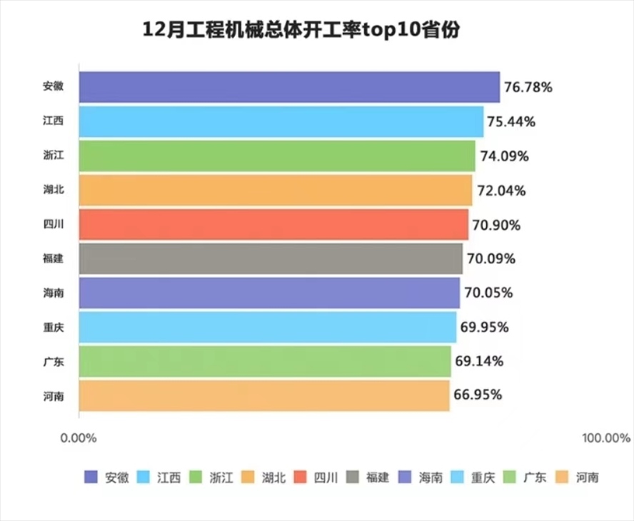 挖掘機是基礎設施建設的“標配”,是反映基礎設施建設、觀察固定資產投資等經濟變化的風向標。“央視財經挖掘機指數”1月16日發(fā)布了最新相關數據。2023年全國工程機械開工率為58.57%,各項基礎設施建設穩(wěn)中向好,不少省份勇扛“穩(wěn)增長”大旗,整體數據表現跑贏2022年。