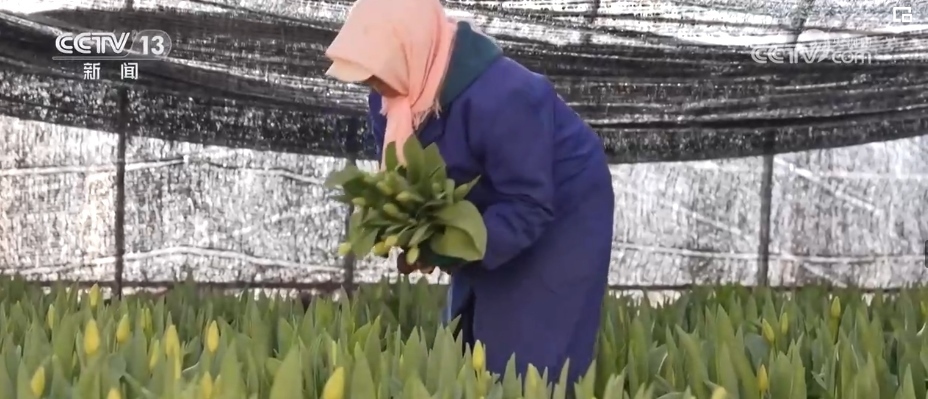在銀川市興慶區(qū)的這個花卉基地,大棚里的郁金香、百合花含苞待放,工人們正在仔細挑選成熟的花苞,進行裁切、整理、打包,準備發(fā)往全國市場。