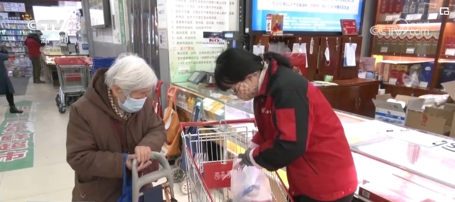 早上8時(shí),社區(qū)附近的東單菜市場(chǎng)開門營(yíng)業(yè)。87歲的曹奶奶今天用積分換了很多東西,菜市場(chǎng)的工作人員提出免費(fèi)幫她送到家里。