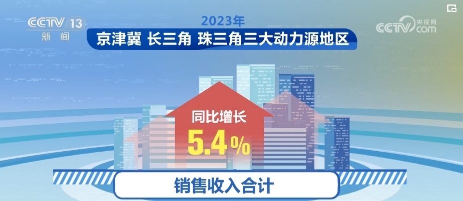 2023年,京津冀、長三角、珠三角三大動力源地區(qū)經濟總體呈現較快發(fā)展態(tài)勢,銷售收入合計同比增長5.4%,占全國比重提高至54.1%,較2022年提高0.3個百分點,帶動作用持續(xù)增強。