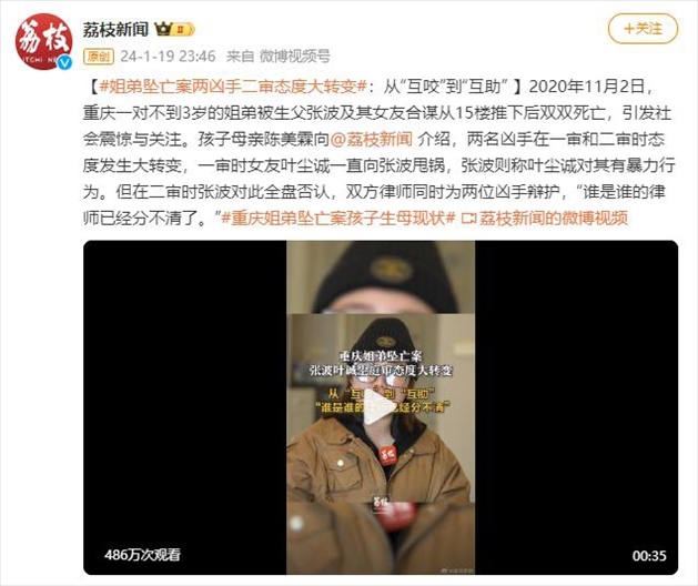 ·重慶姐弟墜亡案孩子母親陳美霖近日向媒體介紹,兩名兇手在一審和二審時(shí)態(tài)度發(fā)生大轉(zhuǎn)變,一審時(shí)女友葉塵誠一直向張波甩鍋,張波則稱葉塵誠對其有暴力行為。但在二審時(shí)張波對此全盤否認(rèn),雙方律師同時(shí)為兩位兇手辯護(hù),“誰是誰的律師已經(jīng)分不清了?!?/p>