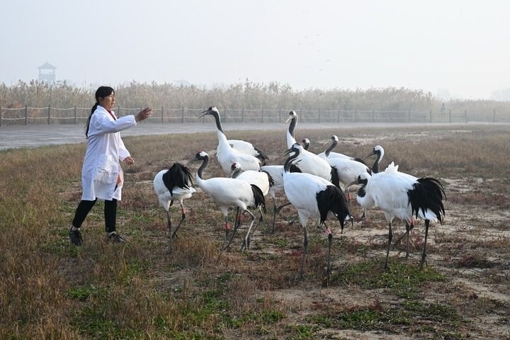 冬日清晨,遼闊的黃海濕地被成群丹頂鶴的高亢鳴叫喚醒。這里是“東亞-澳大利西亞”遷飛通道上數(shù)百萬候鳥的“加油站”,每年有約400至600只野生丹頂鶴在此越冬。不久前美國(guó)加州州長(zhǎng)紐森到訪時(shí),一只陪同“參觀”的丹頂鶴意外走紅,以優(yōu)雅姿態(tài)為美麗江蘇代言。
