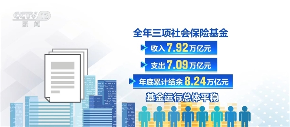 截至2023年底,我國(guó)基本養(yǎng)老、失業(yè)、工傷保險(xiǎn)參保人數(shù)分別為10.66億人、2.44億人、3.02億人,同比增加1336萬(wàn)人、566萬(wàn)人、1054萬(wàn)人。全年三項(xiàng)社會(huì)保險(xiǎn)基金收入7.92萬(wàn)億元,支出7.09萬(wàn)億元,年底累計(jì)結(jié)余8.24萬(wàn)億元,基金運(yùn)行總體平穩(wěn)。
