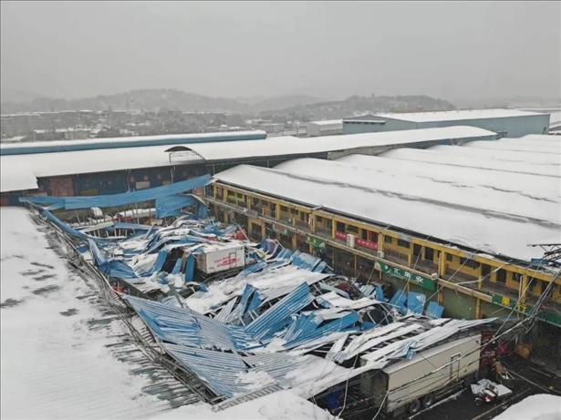 ·湖南郴州一水果大市場頂棚積雪垮塌前預(yù)警及時,百余人成功避險。