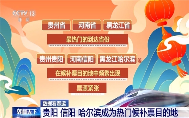 貴州省、河南省、黑龍江省是最熱門的到達(dá)省份。貴州貴陽(yáng)、河南信陽(yáng)、黑龍江哈爾濱等在候補(bǔ)票目的地中頻繁出現(xiàn),票源緊張。