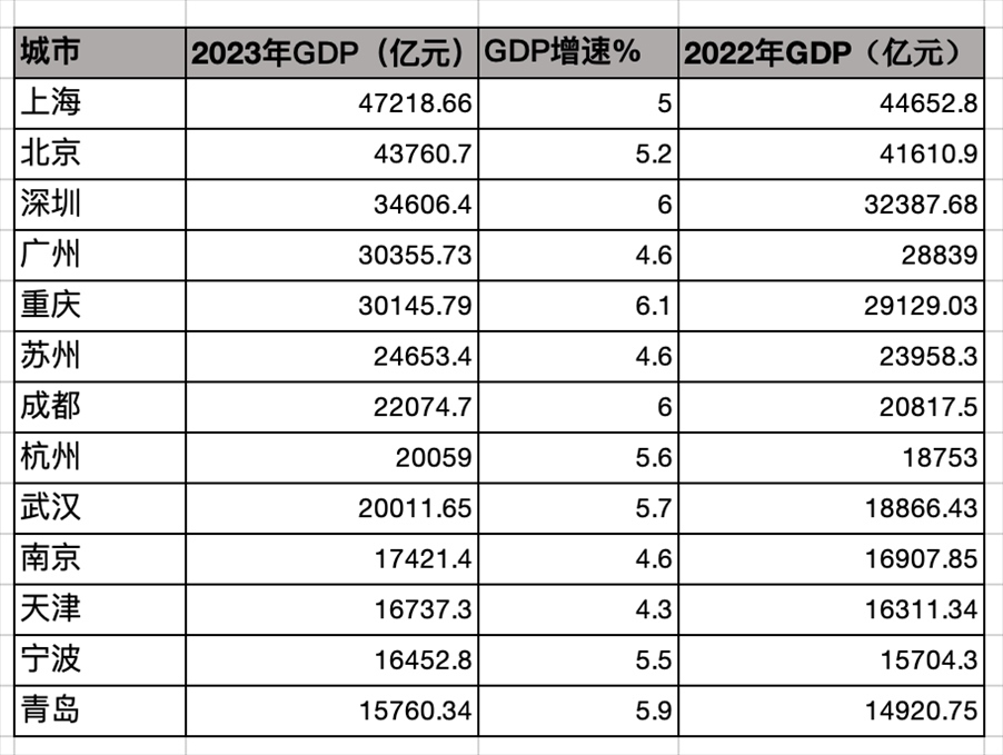 2023年GDP10強城市