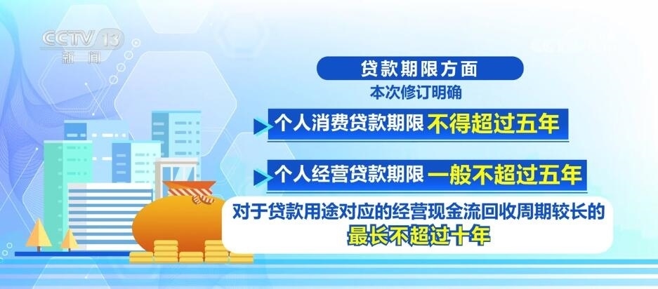 在貸款期限方面,本次修訂明確:固定資產(chǎn)貸款期限一般不超過十年。流動(dòng)資金貸款期限原則上不超過三年,對經(jīng)營現(xiàn)金流回收周期較長的,最長不超過五年。